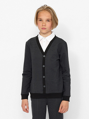 Джемпер с контрастными боковыми вставками от горловины до низа рукава. Рукава втачные, длинные. Горловина круглая, обработана притачной планкой из рибаны с лайкрой. Перед декорирован принтом.