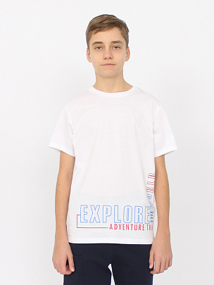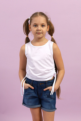 Футболка со спущенным плечом и короткими рукавами. Спереди карман декорирован ришелье. Горловина круглая, обработана притачной бейкой. По ростку горловины шов притачивания закрыт долевиком.