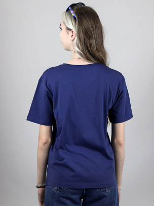 Футболка прямого силуэта с короткими рукавами. Горловина круглая, обработана притачной бейкой из рибаны с лайкрой. Перед футболки декорирован принтом с использованием глиттера.